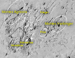 Few steep slopes supporting 2 craterlets to the East.